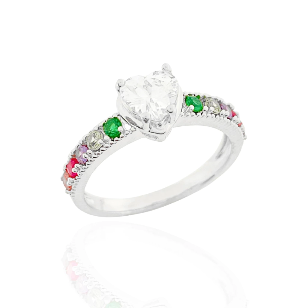 Anel Solitário Coração e Zircônias Colors: Este anel é uma verdadeira declaração de amor e elegância.