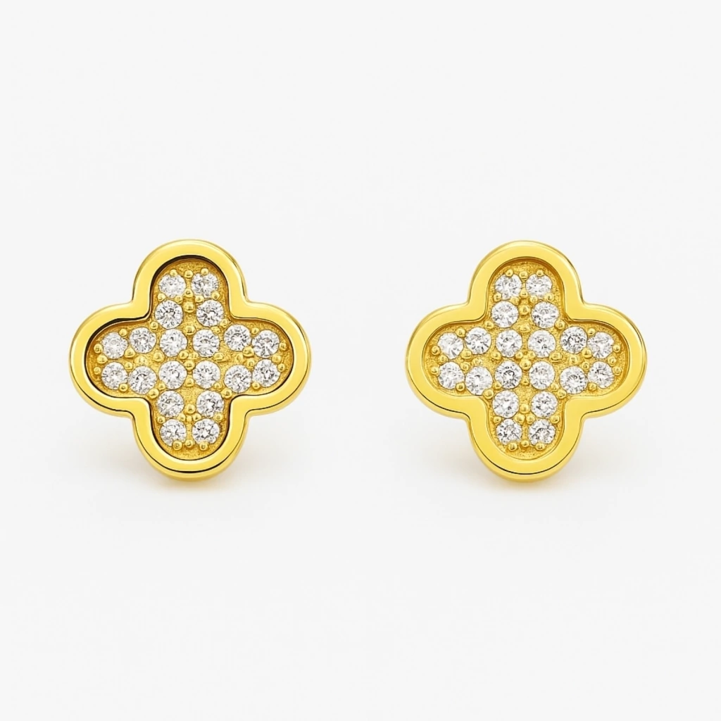 Delicado e sofisticado, o Brinco Trevo Cravejado em Aço Inoxidável 316L Dourado é a escolha ideal para quem busca um toque de elegância no dia a dia.