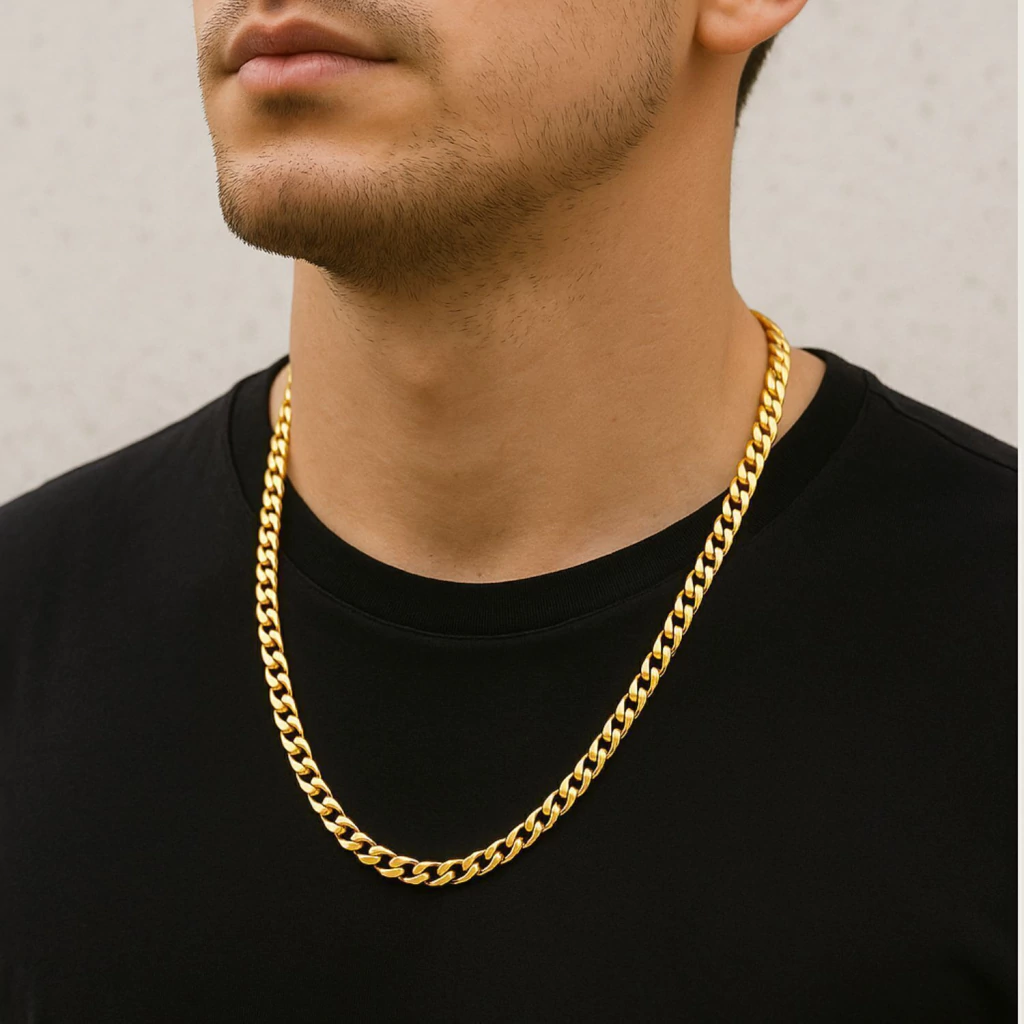 Para quem busca elegância e destaque, esta corrente dourada em aço inoxidável 316 entrega brilho luxuoso e resistência superior.