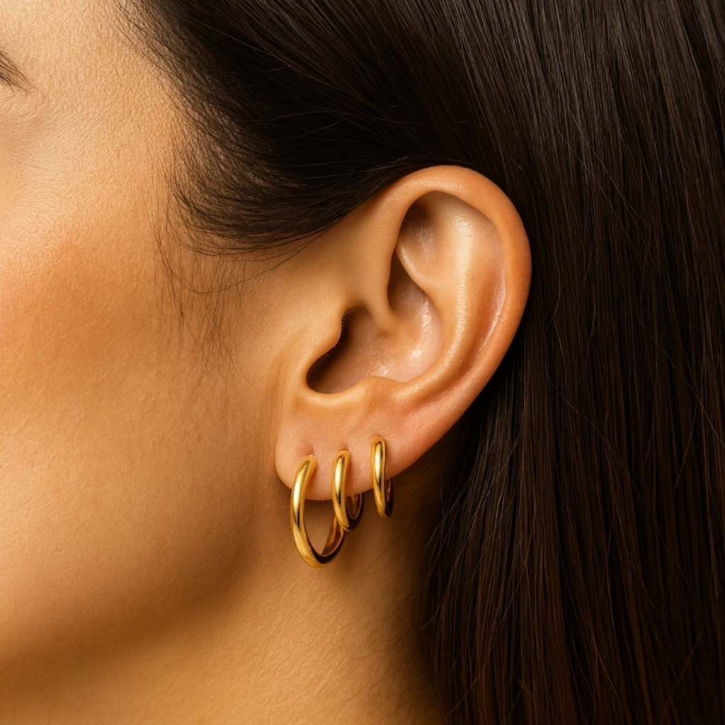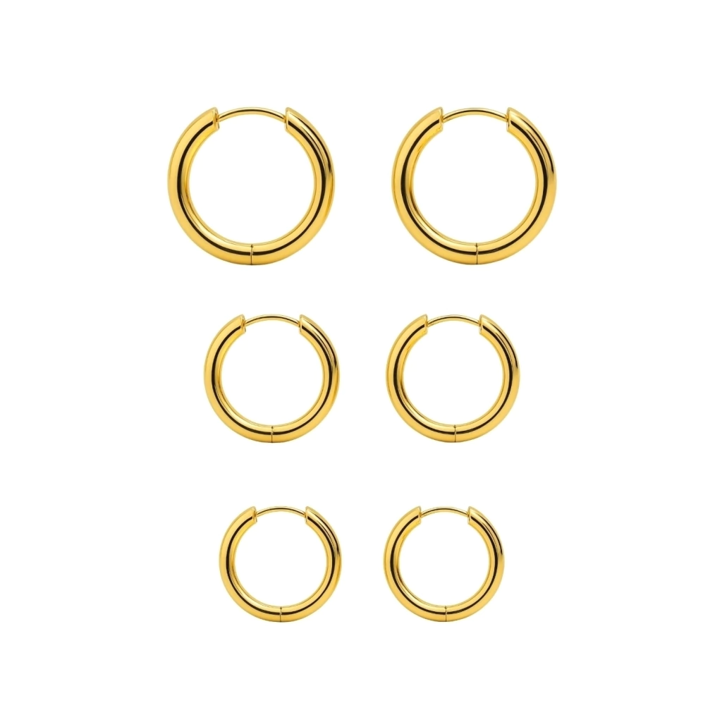 O Trio de Argolas Douradas em Aço Inoxidável 316L é a escolha perfeita para quem ama estilo, praticidade e sofisticação em um só conjunto.